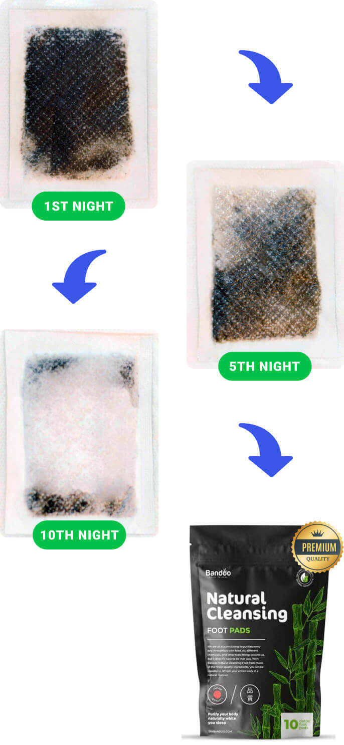 A: When applied to the feet, the detox patches encourage sweating and let the natural herbs and ancient Japanese wisdom take effect, absorbing impurities that leave through your feet.